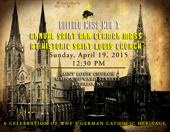 The next Buffalo Mass Mob will be held Sunday, April 19th, 2015 at 12:30pm for Saint Ann’s annual German Mass at historic Saint Louis Church. This will be a unique Mass as it is said in German and celebrates WNY’s German Catholic Heritage.