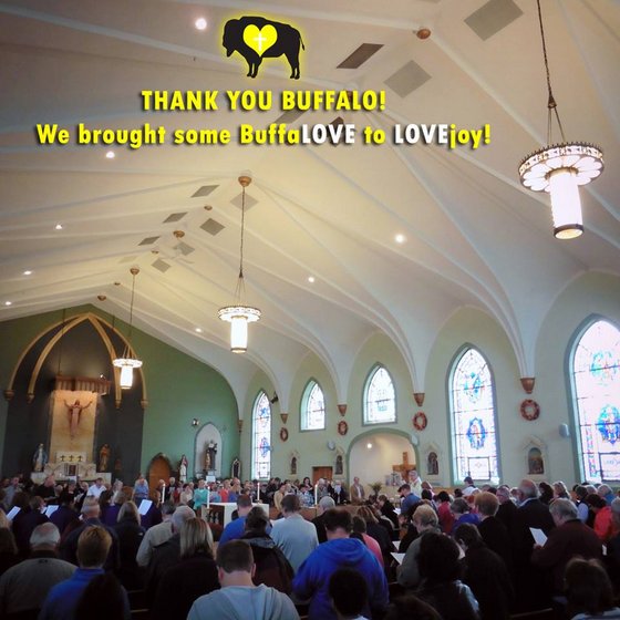 Thank you, Buffalo! The Mass Mobs are only a success because you come and support them. We have to admit that our organizers are very nervous each time Sunday rolls around for a Mass Mob. Because of the organic nature in how the Masses are organized through social media, etc., we never know how many people will show up. But you come! And that is a blessing. As with all our previous Mass Mobs, Saint Katharine Drexel definitely got a boost Sunday! We brought some BuffaLOVE to LOVEjoy!