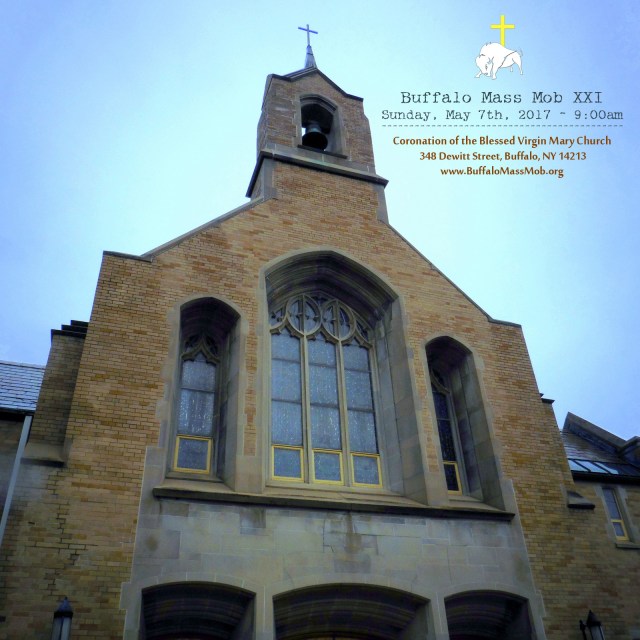 The next Buffalo Mass Mob will be held on Sunday, May 7th at 9:00am at the Coronation of the Blessed Virgin Mary Church. The church is located on Buffalo’s West Side at 348 Dewitt Street.