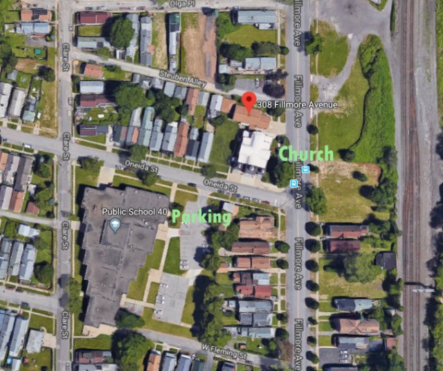 - Parking, there is ample street parking on the streets surrounding the church. There is also a lot at School 40 on Oneida Street across from the church. Click here for directions to 308 Fillmore—>