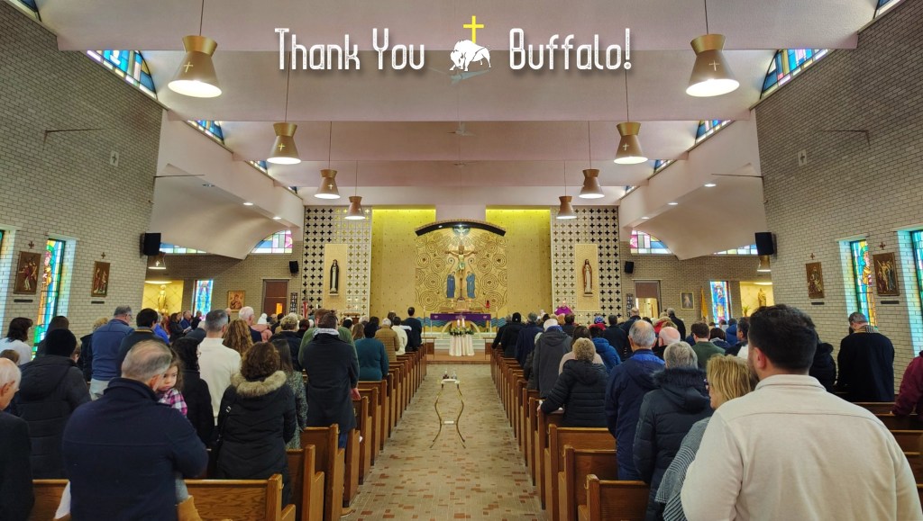 Buffalo Mass Mob 55 at St. Rose of Lima Church in North Buffalo worked out well. We were a bit nervous because of the snowy weather in the morning, but we had a friendly crowd on hand. The church and parish community are wonderful parts of the fabric that help make the Buffalo Diocese special.
