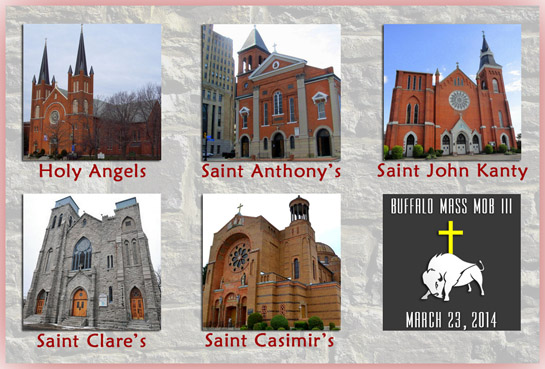 With the very successful First Buffalo Mass Mob at Saint Adalbert Basilica in the books, we decided to ask ask the public to submit suggestions to choose the church we are going to attend on January 12, 2014. Through our website, people made hundreds of suggestions. From the churches submitted, we took the top three …